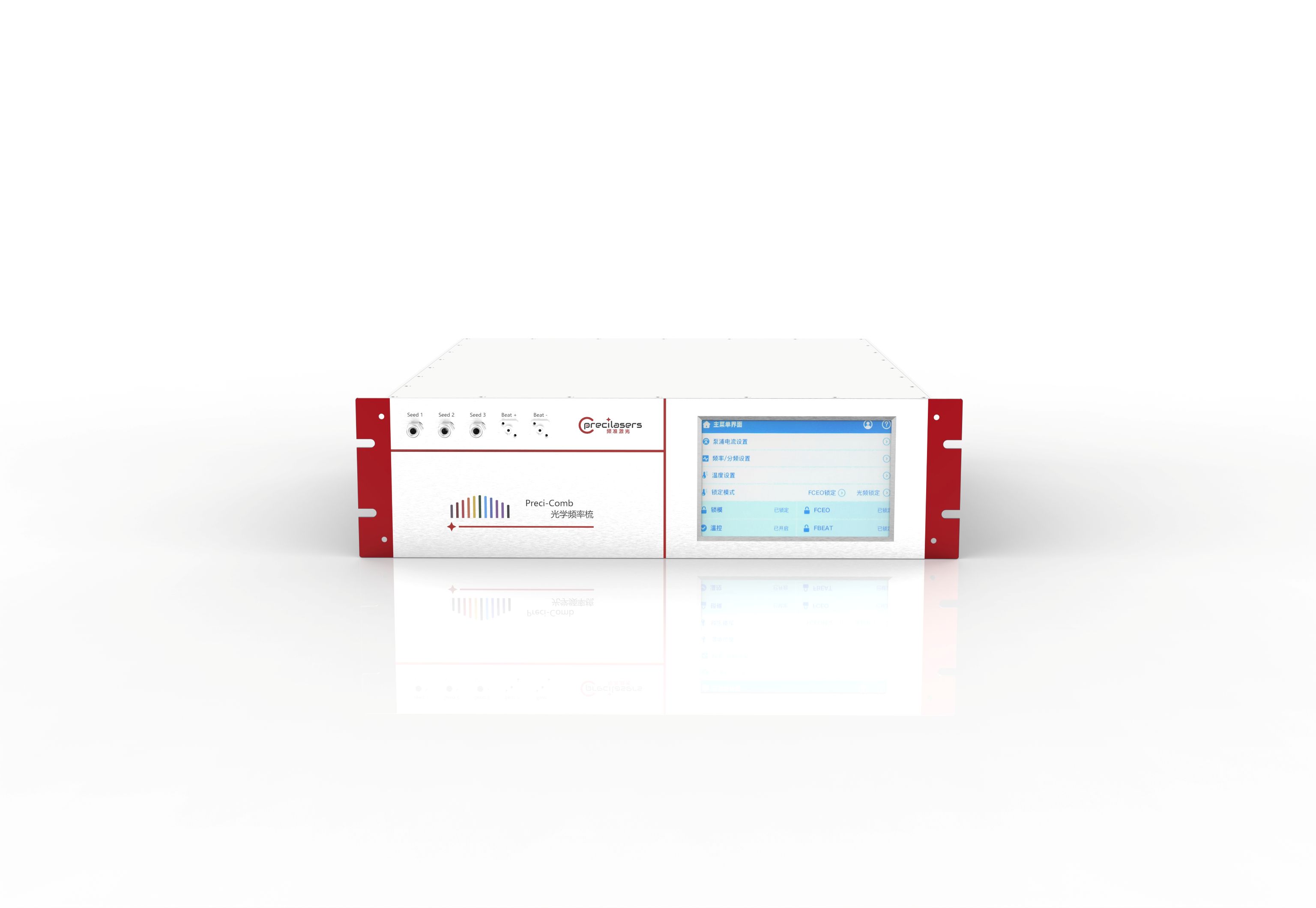 频准激光的小体积光学频率梳,在3U标准19” 机柜的体积里,实现了高精度,高稳定度,一键式全自动化的光学频率梳。基于高度定制化的可选光学模块,它支持高达2W的光功率输出,可以在650nm-2200nm之间实现任意光学频率测量和光学参考,可以广泛地用于光学精密测量、冷原子光钟、时间频率传递、量子精密测量等领域。