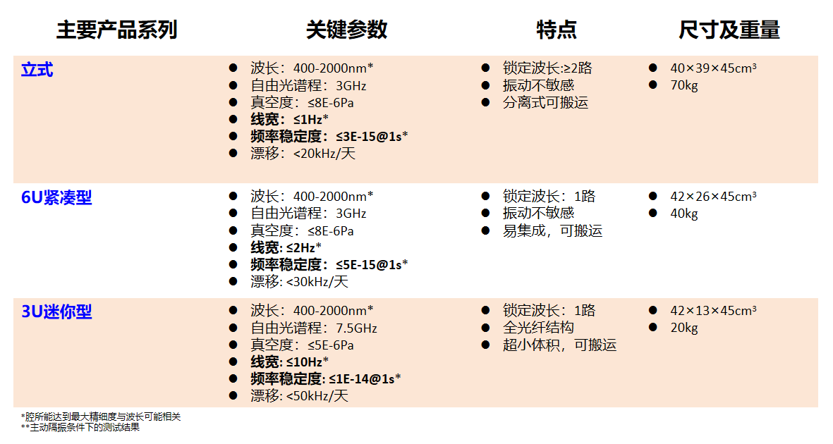表1. 频准三款超稳激光系统的参数对比